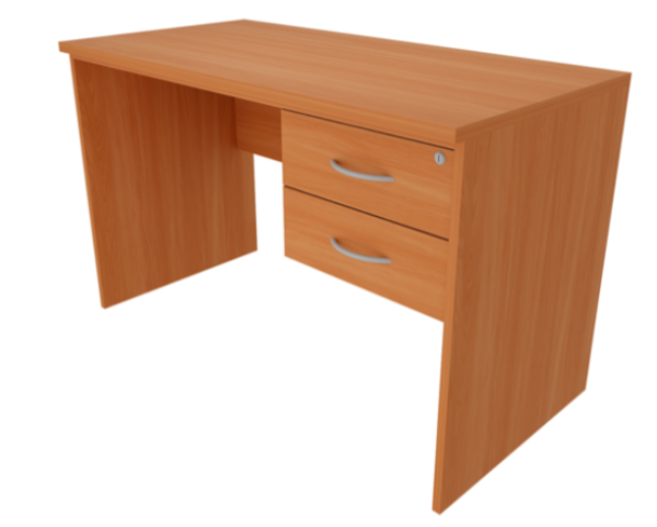 Estructura de escritorio operativo fabricado en melamina de 18mm color peral, cajones en melamina de 15mm, tiradores metálicos, tapa canto PVC. Diseñada para uso interior, oficinas, salas de clases, home office, etc.