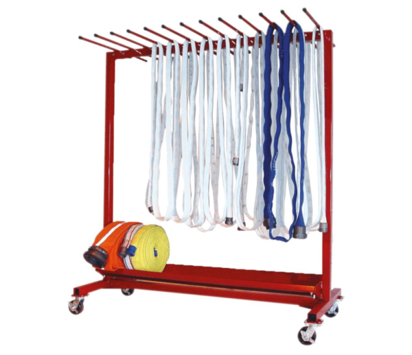 Los rieles para almacenar mangueras miden 162 cm de largo. Con el soporte para secar y almacenar mangueras, puede secar y almacenar la manguera en la misma unidad. La unidad consta de un soporte de secado superior, donde la manguera y otros equipos se secan de forma natural y rápida, y un soporte de almacenamiento inferior. Construcción de acero resistente con un acabado duradero de pintura en polvo roja.